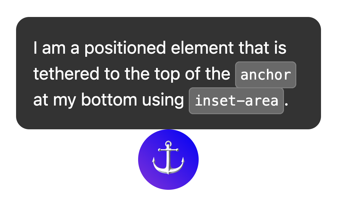 Die erste Möglichkeit, einen Anker mit einem anderen Element zu verbinden, ist ein impliziter Anker, wie im folgenden Codebeispiel. Die Property position-anchor wird dem Element hinzugefügt, das Sie mit dem Anker verbinden möchten, und hat den Namen des Ankers (in diesem Fall --anchor-el) als Wert.