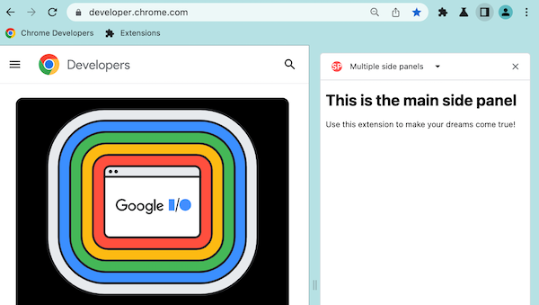 chrome.sidePanel API を使用すると、ウェブページのメイン コンテンツとともにブラウザのサイドパネルにコンテンツをホストできます。