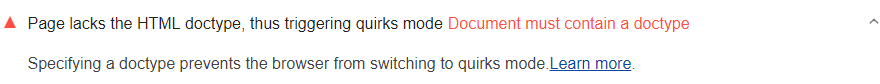 Hoe de Lighthouse doctype-audit mislukt Pagina's met vuurtorenvlaggen zonder de <!DOCTYPE html> -declaratie: